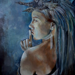 Obraz jest opowieścią o intensywnym życiu wewnętrznym dziewczynki, która próbuje uciszyć własne myśli. To opowieść o tym, że to co najistotniejsze, rozgrywa się poza słowami, o ciszy, która nie jest pustką ale pełnią przeżyć. To portret nie tylko osoby ale również jej wrażliwości. Głowa i ptaki tworzą jedną wspólną formę, prawie jak przedłużenie psychiki postaci, to wizualizacja wnętrza: myśli, lęków, wyobraźni,przeżyć.